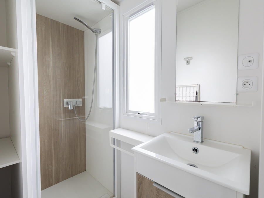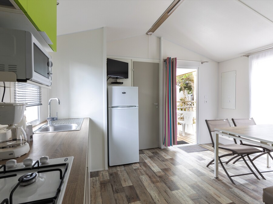 Ushuaïa villages la Conge » Votre recherche de séjour » Mobil-home MALAGA 27m² – 2 chambres avec terrasse bois semi couverte.