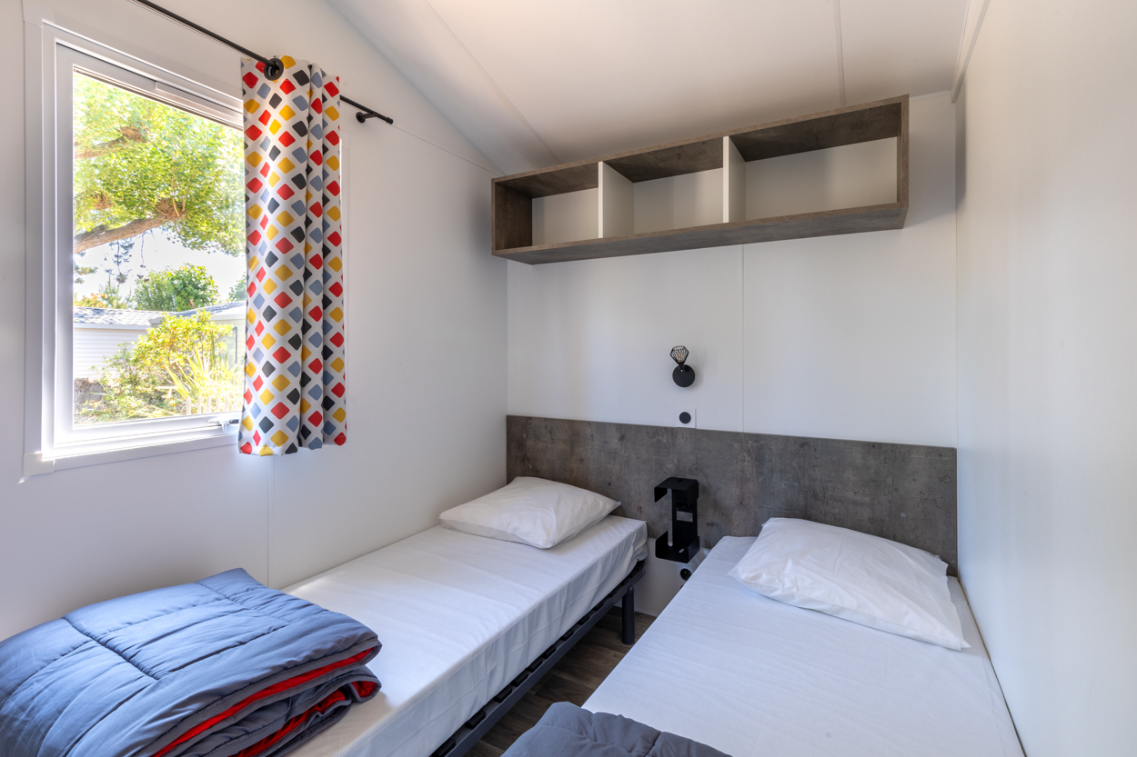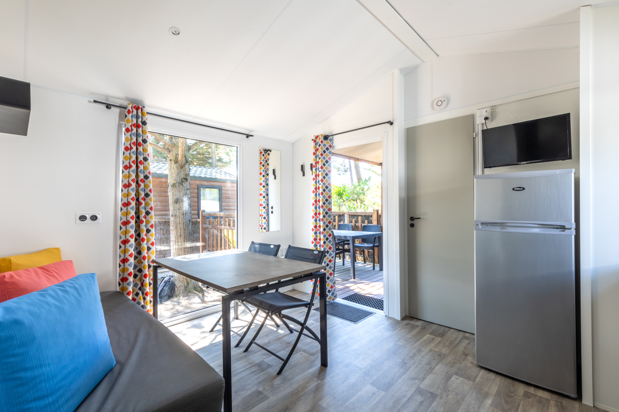 Ushuaïa villages la Conge » Votre recherche de séjour » Mobil-home MALAGA BOIS 27m² – 2 chambres – 4 pers, terrasse bois semi couverte